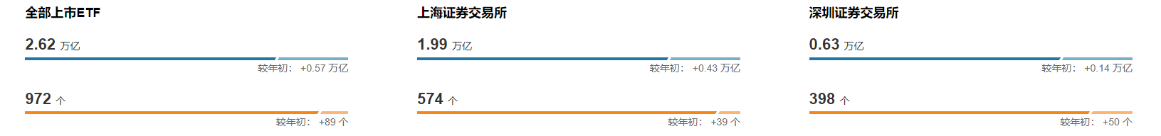 显然,在各路资金涌入下,ETF继续驶入发展“快车道”,尤其是宽基ETF更是成为增长的“主力军”。数据显示,截至当前,ETF总规模已经达到2.62万亿元,年内规模增长接近6000亿元。