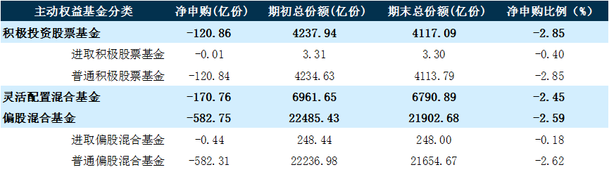 基于天相基金分类口径,主动权益类基金包括积极投资股票基金、偏股混合基金、灵活配置混合基金。其中,积极投资股票基金的两个三级分类分别是进取积极股票基金、普通积极股票基金,偏股混合基金的两个三级分类分别是进取偏股混合基金、普通偏股混合基金。