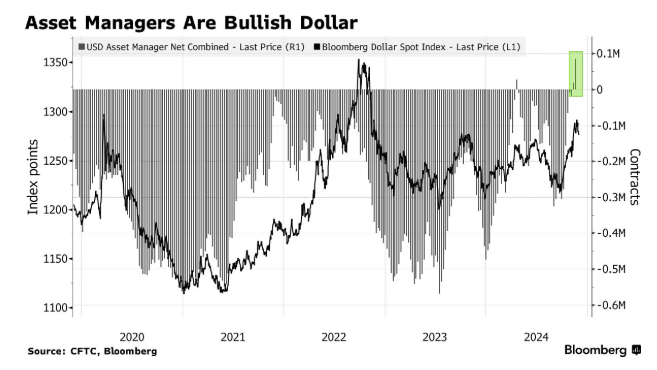 值得一提的是,近来一边倒的美元多头仓位,在接下来反而可能会成为美元的隐患。CFTC的持仓数据显示,资产管理公司目前对美元的看涨情绪自2016年以来最为强烈,但一旦投资者开始获利了结或美元升势有变,便很容易产生踩踏。