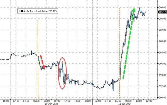 苹果最新的股价新高发生在该公司的年度全球开发者大会(WWDC)之后。本周一,在WWDC大会上,苹果展示了一系列与人工智能相关的功能,并宣布与OpenAI建立合作伙伴关系,iPhone将接入ChatGPT。此前许多投资者担心,在AI大潮中,苹果相对其他大型科技公司落后,而最新的WWDC令苹果的这项战略更为明确和清晰。